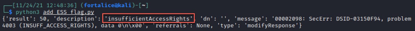 Using the -get-acl flag above, we can easily diagnose the attribute our WriteProperty permission applies to.