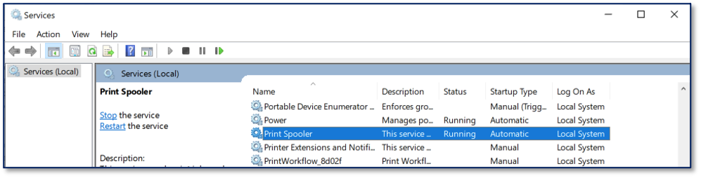 Warning: The Print Spooler service is responsible for handling print job management. Disabling this service on print servers may result in a loss of functionality.