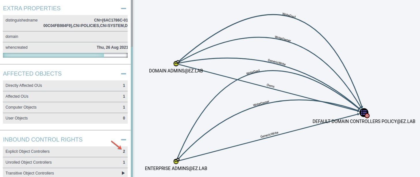 If we’re hunting for modifiable GPOs, we can also view the inbound controllers and start down the ACL path again: