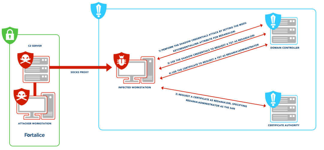 Eventually, compromise of a mid-tier administrative account allowed us to incorporate the Shadow Credentials attack, described by Elad Shamir (@elad_shamir), to aid in completion of privilege escalation through a vulnerable certificate template. I have set-up my lab environment in a very similar configuration to showcase the combined capabilities of several recently released tools, all of which relate to PKINIT authentication.